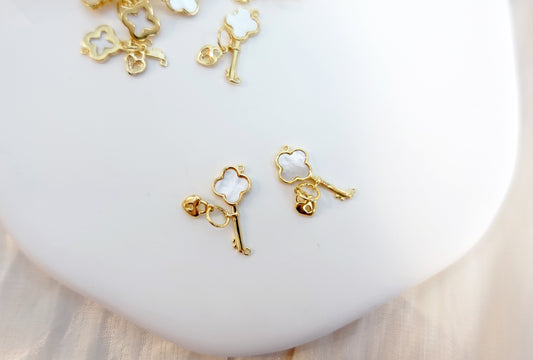 Mother of pearl Four-leaf clover with double circle charm Version 2