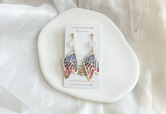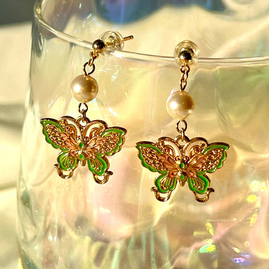Cloisonné Enamel Oil Dripping Butterfly Swarovski Pearl Earrings