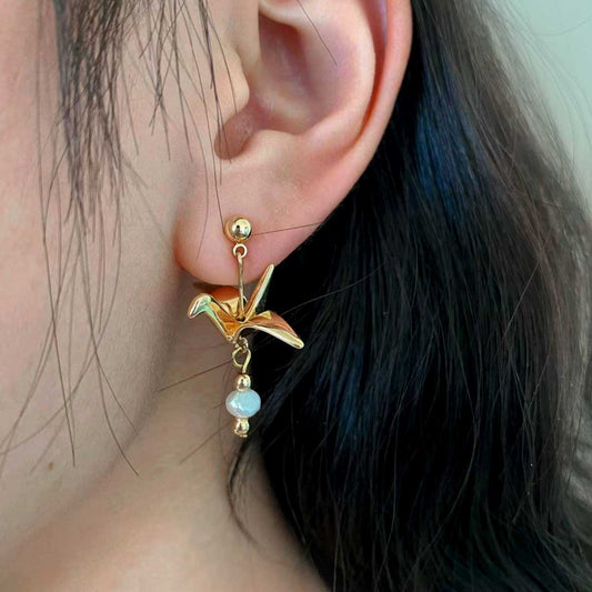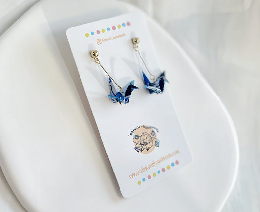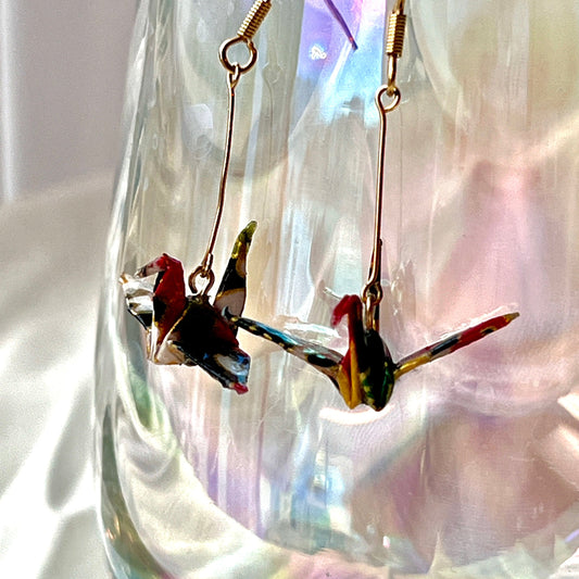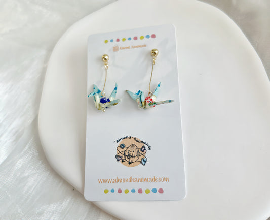Paper Crane Silver Earrings with Japanese Cotton Beads