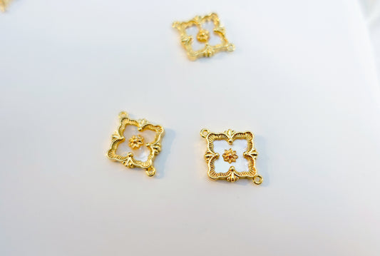Mother of pearl Four-leaf clover with double circle charm Version 2